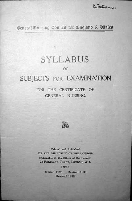 Evelyn Betham - GNC SRN Syllabus of Subjects for Examination 1925 - (Revised 1939).