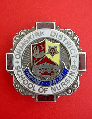 ..... Short Description ...... The Ormskirk District School of Nursing Hospital badge was awarded to nurses on completion of training. It is (shape) in shape and made from (materials), with the hospital name around the circumference. The badge weighs (weight) grams and has a (rear pin/button hole) fixing. Picture: The central design is of (description). Badges (were/were not) named and dated with the name of the recipient on the reverse. ..... |
