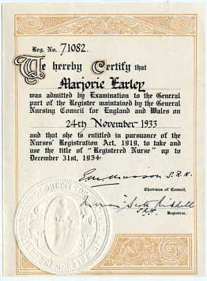 24th November 1933 - Admittance to the GNC Register of Nurses.