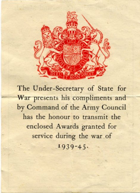 War Service Medal Cover Letter - Lt Marjorie Earley QARANC TANS  (R).