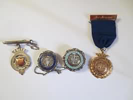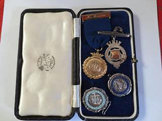 L: R; First Prize Medal, GNC badge, Folkestone Hospital Badge and Gold medal ’For Service’.
