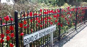 A modern memorial of poppies, opposite Folkestone War Memorial In April 1945 Louisa was
