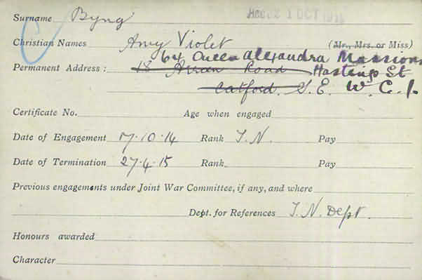 Red Cross card records that she was living at 64 Queen Alexandra