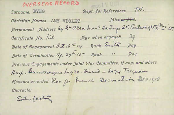 two medal cards on ancestry.co.uk for an Amy Violet Byng, the second