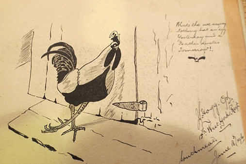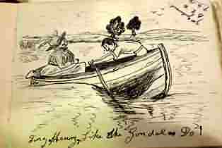 Two photographic postcards were found inside the front of the book;