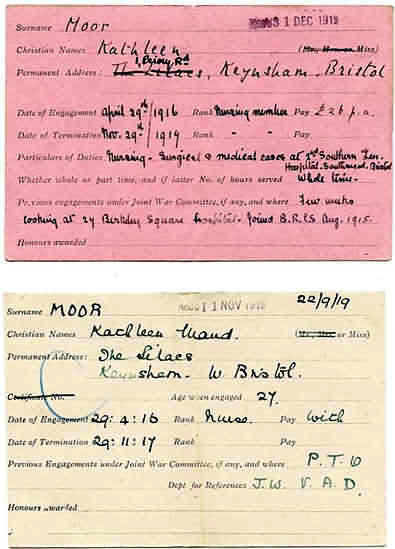 1911, RG14, 2292, accessed via 4. BCRS V.A.D. cards for Kathleen Moor. 5. TNA, 1911 Census Returns of England and Wales, 1911, RG14, 2292, accessed via www.ancestry.co.uk on 24th January 2015. 6. BCRS V.A.D. cards for Kathleen Moor. 7. www.freebmd.co.uk, death registers for England and Wales. Illustrations. BRCS Cards reproduced with grateful thanks to the BRCS, copyright BRCS. All other illustrations, copyright; the author. © Sarah Rogers 24th January 2015.
