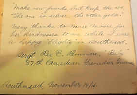 The autograph book, identified as the property of Nurse Kathleen Moor, appears to be that of Maud Kathleen Moor; there is only one Maud Kathleen Moor on Free BMD.1 Identifying Kathleen was made simple with the aid of the British Red Cross Society Cards, which are in the process of being transcribed by volunteers and placed on their website; so far at the time of writing A-E are now online and searchable for free: http://www.redcross.org.uk/About-us/Who-we-are/History-and-origin/First-World-War/Search. More volunteers would speed up the project process!2 Kathleen was born in Clapham in 1888, the third of four daughters born to her parents; her mother Elizabeth and her father Arthur who was a commercial jeweller.3 The BRCS cards
