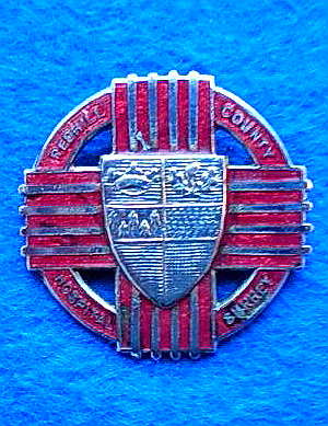 ...... Short Description ...... The Redhill County Hospital Surrey Hospital badge was awarded to nurses on completion of training. It is crossed oval in shape and made from (materials), with the hospital name around the circumference. The badge weighs (weight) grams and has a (rear pin/button hole) fixing. Picture: The central design is of (description). Badges (were/were not) named and dated with the name of the recipient on the reverse. ...... |