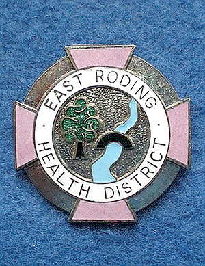 Short Description ...... The East Roding Health District London Hospital badge was awarded to nurses on completion of (length of) training. The badge is oval in shape and made from (materials), with the hospital name outlined around the circumference. The badge weighs (weight) grams and has a (rear pin/button hole) fixing. Picture: The central design is of the Jersey coat of arms below a Queens Crown. Badges (were/were not) named and dated with the name of the recipient on the reverse. |