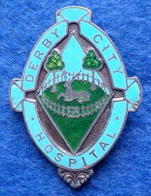 Short Description ...... The Derby City Hospital East Midlands Hospital badge was awarded to nurses on completion of training. It is circular in shape and made from (materials), with the hospital name, date of the hospitals construction and motto inscribed in Latin around the circumference.