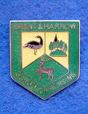 ...... Short Description ...... The Brent & Harrow School of Nursing London Hospital badge was awarded to nurses on completion of training. It is crossed oval in shape and made from (materials), with the hospital name around the circumference. The badge weighs (weight) grams and has a (rear pin/button hole) fixing. Picture: The central design is of (description). Badges (were/were not) named and dated with the name of the recipient on the reverse. ...... |
