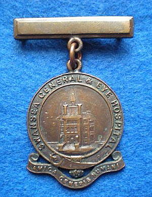 ...... Short Description ...... The Swansea General & Eye Hospital Wales Hospital badge was awarded to nurses on completion of training. It is oval in shape and made from (materials), with the hospital name around the circumference. The badge weighs (weight) grams and has a (rear pin/button hole) fixing. Picture: The central design is of (description). Badges (were/were not) named and dated with the name of the recipient on the on the reverse. ...... |