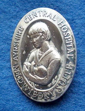 Short Description ...... The Ayreshire Central Hospital Maternity Suite Scotland Hospital badge was awarded to nurses on completion of training. It is circular in shape and made from (materials), with the hospital name, date of the hospitals construction and motto inscribed in Latin around the circumference. The badge weighs (weight) grams and has a (rear pin/button hole) fixing. Picture: The central design is of (description). Badges (were/were not) named and dated with the name of the recipient on the reverse. |