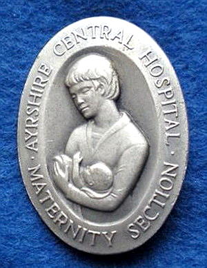 Short Description ...... The Ayreshire Central Hospital Maternity Section Scotland Hospital badge was awarded to nurses on completion of (length of) training. The badge is oval in shape and made from (materials), with the hospital name outlined around the circumference. The badge weighs (weight) grams and has a (rear pin/button hole) fixing. Picture: The central design is of the Jersey coat of arms below a Queens Crown. Badges (were/were not) named and dated with the name of the recipient on the reverse. |