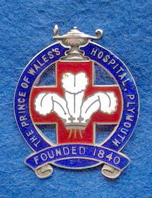 ...... Short Description ...... The Prince of Wales's Hospital Plymouth, Devon Hospital badge was awarded to nurses on completion of training. It is crossed oval in shape and made from (materials), with the hospital name around the circumference. The badge weighs (weight) grams and has a (rear pin/button hole) fixing. Picture: The central design is of (description). Badges (were/were not) named and dated with the name of the recipient on the reverse. ...... |