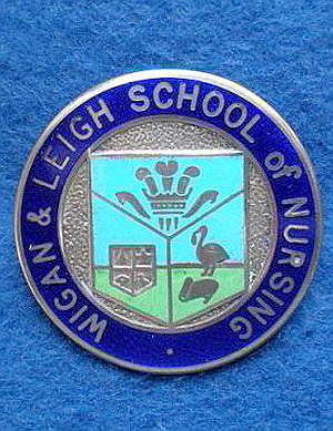 ...... Short Description ...... The Wigan and Leigh School of Nursing Greater Manchester Hospital badge was awarded to nurses on completion of training. It is circular in shape and made from silver, with the hospital name around the Periphery. The badge weighs (weight) grams and has a (rear pin/button hole) fixing. Picture: The central design is of (description). Badges (were/were not) named and dated with the name of the recipient on the reverse. ...... |