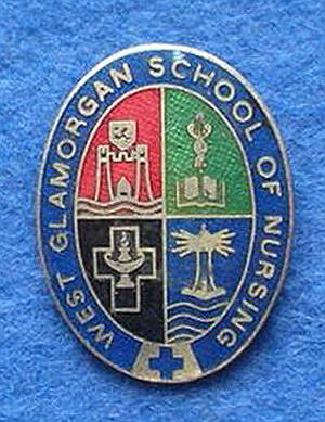 ..... Short Description ...... The West Glamorgan School of Nursing Wales Hospital badge was awarded to nurses on completion of training. It is oval in shape and made from (materials), with the hospital name around the circumference. The badge weighs (weight) grams and has a (rear pin/button hole) fixing. Picture: The central design is of (description). Badges (were/were not) named and dated with the name of the recipient on the reverse. ..... |