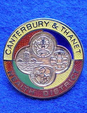 ..... Short Description ...... The Canterbury & Thanet Health District Kent hospital badge was awarded to nurses on completion of training. It is circular in shape and made from (materials), with the hospital name around the circumference. The badge weighs (weight) grams and has a (rear pin/button hole) fixing. Picture: The central design is of (description). Badges (were/were not) named and dated with the name of the recipient on the reverse. ..... |