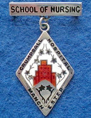 Short Description ...... The Crumpsall Hospital School of Nursing Manchester Hospital badge was awarded to nurses on completion of training. It is oval in shape and made from (materials), with the hospital name around the circumference. The badge weighs (weight) grams and has a (rear pin/button hole) fixing. Picture: The central design is of (description). Badges (were/were not) named and dated with the name of the recipient on the reverse. |