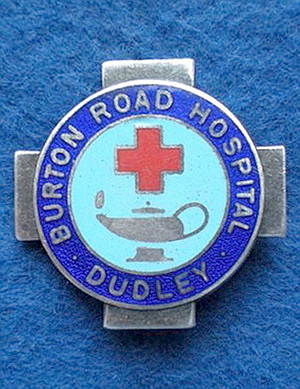 Short Description ...... The Burton Road Hospital Dudley West Midlands Hospital badge was awarded to nurses on completion of training. It is a circular shape with a central circular area with the hospital name above. It is made from silver metal. The badge weighs (weight) grams and has the top looped suspension bar fixing. Picture: The central circular design contains the name of the hospital above with the central picture & lamp cast in relief. Badges (were/were not) named and dated with the name of the recipient on the reverse. |