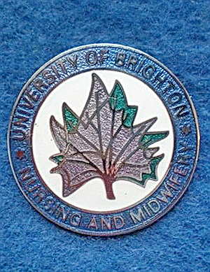 ..... Short Description ...... The University of Brighton Nursing & Midwifery Sussex Hospital badge was awarded to nurses on completion of training. It is circular in shape and made from silver with the school name around the circumference. The badge weighs (weight) grams and has a (rear pin/button hole) fixing. Picture: The central design is of (description). Badges (were/were not) named and dated with the name of the recipient on theon the reverse. ...... |