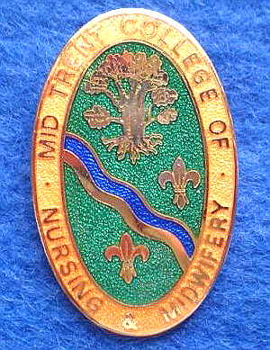 ...... Short Description ...... The Mid Tent College of Nursing & Midwifery Nottingham Hospital badge was awarded to nurses on completion of training. It is circular in shape and made from (materials), with the hospital name around the circumference. The badge weighs (weight) grams and has a (rear pin/button hole) fixing. Picture: The central design is of (description). Badges (were/were not) named and dated with the name of the recipient on the reverse. ...... |
