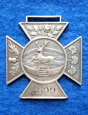 The badge design (was by/is unknown at the preset time) and was first awarded in (Date). Manufactured by (badge maker) the number of badges (made/awarded) is (number/unknown). |