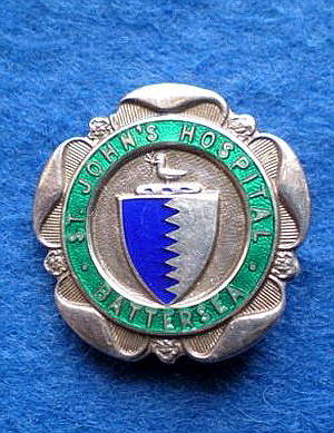 ..... Short Description ...... The St. John's Hospital Battersea London Hospital badge was awarded to nurses on completion of training. It is oval in shape and made from (materials), with the hospital name and motto around the circumference. The badge weighs (weight) grams and has a (rear pin/button hole) fixing. Picture: The central design is of (description). Badges (were/were not) named and dated with the name of the recipient on the reverse. ..... |