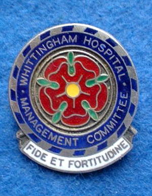 ..... Short Description ...... The SWhittingham Hospital HMC Lancashire Hospital badge was awarded to nurses on completion of training. It is circular in shape and made from (materials), with the hospital name around the circumference. The badge weighs (weight) grams and has a (rear pin/button hole) fixing. Picture: The central design is of (description). Badges (were/were not) named and dated with the name of the recipient on the reverse. ...... |