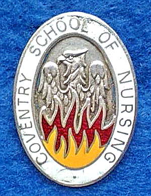 Short Description ...... The Coventry School of Nursing Warwickshire Hospital badge was awarded to nurses on completion of (length of) training. The badge is circular in shape and made from (materials), with the hospital name outlined around the circumference. The badge weighs (weight) grams and has a (rear pin/button hole) fixing. Picture: The central design is of the xxxx coat of arms. Badges (were/were not) named and dated with the name of the recipient on the reverse.. |