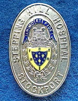 Short Description ...... The Stepping Hill Hospital Stockport Cheshire Hospital badge It is an oval shape with a with the hospital name around the periphery. It is made from bronze metal. The badge weighs (weight) grams and has the top looped suspension bar fixing. Picture: The central circular design contains the name of the hospital above with the central picture & lamp cast in relief. Badges (were/were not) named and dated with the name of the recipient on the reverse. |