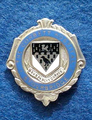 Short Description ...... The The Corbett Hospital Stourbridge Hospital badge was awarded to nurses on completion of training. It is oval in shape looped suspension bar above and is made from (materials). The hospital name The badge weighs (weight) grams and has a (rear pin/button hole) fixing. Picture: The central design is i (description). Badges (were/were not) named and dated with the name of the recipient on the reverse. ...... |