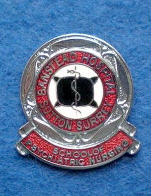 Short Description ...... The Banstead Hospital School of Psychiatric Nursing Sutton Surrey Hospital badge was awarded to nurses on completion of training. It is circular in shape and made from (materials), with the hospital name, date of the hospitals construction and motto inscribed in Latin around the circumference.