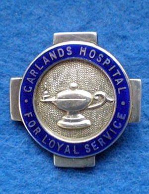 ...... Short Description ...... The Garlands Hospital Loyal Service Carlisle Cumbria Hospital badge was awarded to nurses on completion of training. It is circular in shape and made from (materials), with the hospital name around the circumference. The badge weighs (weight) grams and has a (rear pin/button hole) fixing. Picture: The central design is of (description). Badges (were/were not) named and dated with the name of the recipient on the reverse. ...... |