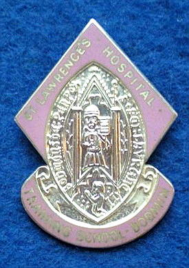 Short Description ...... The St. Lawrence's Hospital Training School Bodmin Cornwall Hospital badge was awarded to nurses on completion of (length of) training. The badge is round in shape and made from (materials), with the hospital name outlined around the circumference. The badge weighs (weight) grams and has a (rear pin/button hole) fixing. Picture: The central design is of the Jersey coat of arms below a Queens Crown. Badges (were/were not) named and dated with the name of the recipient on the reverse. |