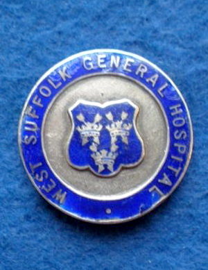 ...... Short Description ...... The West Suffolk General Hospital Bury St. Edmunds Suffolk Hospital badge was awarded to nurses on completion of training. It is circular in shape and made from silver, The badge weighs (weight) grams and has a (rear pin/button hole) fixing. Picture: The central design is of (description). Badges (were/were not) named and dated with the name of the recipient on the reverse. ..... |