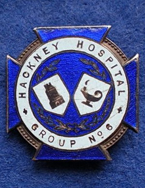 Short Description ...... The Hackney Hospital Group No 6 London Hospital badge was awarded to nurses on completion of training. It is circular in shape and made from (materials), with the hospital name around the circumference. The badge weighs (weight) grams and has a (rear pin/button hole) fixing. Picture: The central design is of (description). Badges (were/were not) named and dated with the name of the recipient on the reverse. |