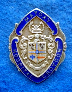 Short Description ...... The Mayday Hospital Croydon Surrey Hospital badge was awarded to nurses on completion of (length of) training. The badge is circular in shape and made from (materials), with the hospital name outlined around the circumference. The badge weighs (weight) grams and has a (rear pin/button hole) fixing. Picture: The central design is of the xxxx coat of arms and motto inscribed in Latin below the shield. Badges (were/were not) named and dated with the name of the recipient on the reverse.. |