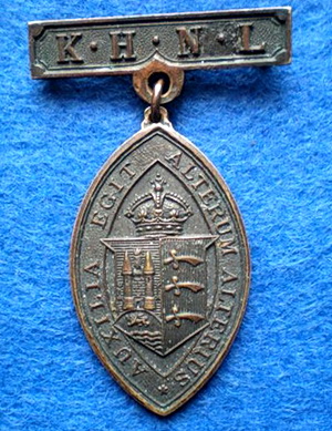 ...... Short Description ...... The K.H.N.L. Hospital Hospital badge was awarded to nurses on completion of training. It is a shield shape and made from (materials), The badge weighs (weight) grams and has a (rear pin/button hole) fixing. Picture: The central design is of (description). Badges (were/were not) named and dated with the name of the recipient on the reverse. |