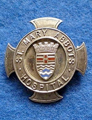 Short Description ...... The St. Mary Abbots Hospital London Hospital badge was awarded to nurses on completion of training. It is circular in shape and made from (materials), with the hospital name around the circumference. The badge weighs (weight) grams and has a (rear pin/button hole) fixing. Picture: The central design is of (description). Badges (were/were not) named and dated with the name of the recipient on the reverse. |