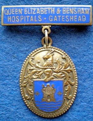 ...... Short Description ...... The Queen Elizabeth & Bensham Hospitals Gateshead Hospital badge was awarded to nurses on completion of training. It is square in shape with cropped corners and is made from (materials). The badge weighs (weight) grams and has a (rear pin/button hole) fixing. Picture: The central design is of the college logo and inscription against a blue enamel background. Badges (were/were not) named and dated with the name of the recipient on the reverse. ...... |