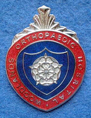 ...... Short Description ...... The Woodlands Orthopaedic Hospital Northfield, Birmingham Hospital Hospital badge was awarded to nurses on completion of training. It is a shield shape and made from (materials), The badge weighs (weight) grams and has a (rear pin/button hole) fixing. Picture: The central design is of (description). Badges (were/were not) named and dated with the name of the recipient on the reverse. |
