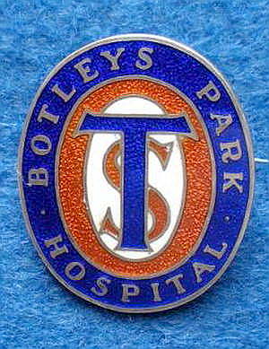 ..... Short Description ...... The Botleys Park Hospital Chertsey Surrey Hospital badge was awarded to nurses on completion of training. It is circular in shape and made from (materials), with the school nam around the circumference. The badge weighs (weight) grams and has a (rear pin/button hole) fixing. Picture: The central design is of (description). Badges (were/were not) named and dated with the name of the recipient on theon the reverse. ...... |