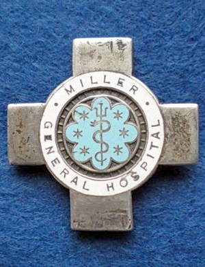 Short Description ...... The Miller General Hospital Greenwich London Hospital badge was awarded to nurses on completion of training. It is circular in shape and made from (materials), with the hospital name, date of the hospitals construction and motto inscribed in Latin around the circumference. The badge weighs (weight) grams and has a (rear pin/button hole) fixing.