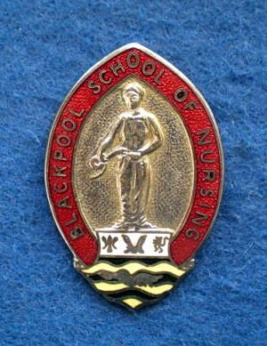 ...... Short Description ...... The Blackpool School of Nursing Lancashire. Hospital badge was awarded to nurses on completion of training. It is oval in shape and made from (materials), with the hospital name around the circumference. The badge weighs (weight) grams and has a (rear pin/button hole) fixing. Picture: The central design is of (description). Badges (were/were not) named and dated with the name of the recipient on the reverse. ...... |