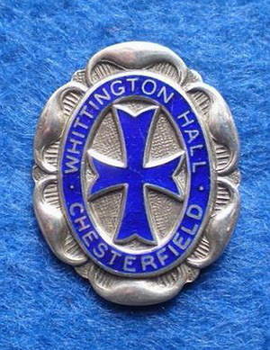 Short Description ...... The Whittington Hall Hospital Chesterfield Derbyshire Hospital badge was awarded to nurses on completion of training. It is circular in shape and made from (materials), with the hospital name around the circumference. The badge weighs (weight) grams and has a (rear pin/button hole) fixing.