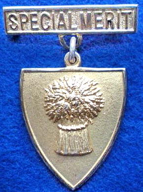 The badge design (was by/is unknown at the preset time) and was first awarded in (Date). Manufactured by (badge maker) the number of badges (made/awarded) is (number/unknown). |