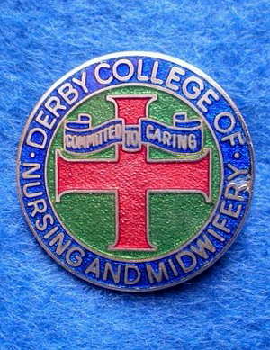 Short Description ...... The Derby College of Nursing and Midwifery Derbyshire Hospital badge was awarded to nurses on completion of training. It is circular in shape and made from (materials), with the hospital name, date of the hospitals construction and motto inscribed in Latin around the circumference. The badge weighs (weight) grams and has a (rear pin/button hole) fixing.