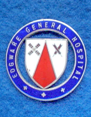 Short Description ...... The Edgeware General Hospital London Hospital badge was awarded to nurses on completion of (length of) training. The badge is circular in shape and made from (materials), with the hospital name outlined around the circumference. The badge weighs (weight) grams and has a (rear pin/button hole) fixing. Picture: The central design is of the xxxx coat of arms and motto inscribed in Latin below the shield. Badges (were/were not) named and dated with the name of the recipient on the reverse.. |