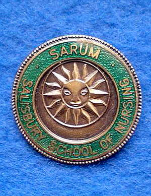 Sarum School of Nursing Salisbury Hospital badge was awarded to nurses on completion of training.